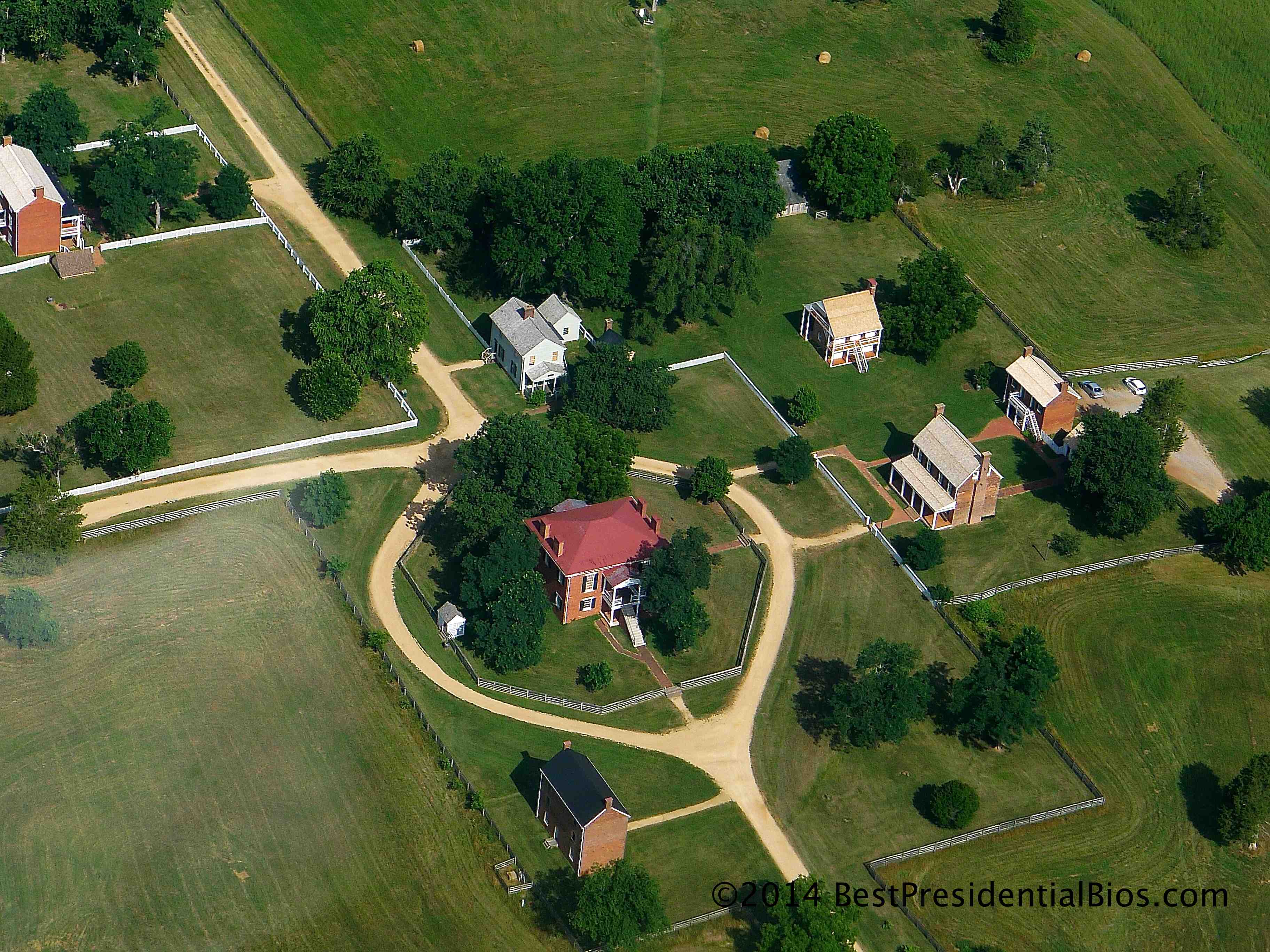 Union General Ulysses S. Grant met with Lee at Wilmer McClean’s house (partially visible at the top-left of the photograph above, and fully visible in the left-center of the photograph below) to formalize the Confederate surrender.